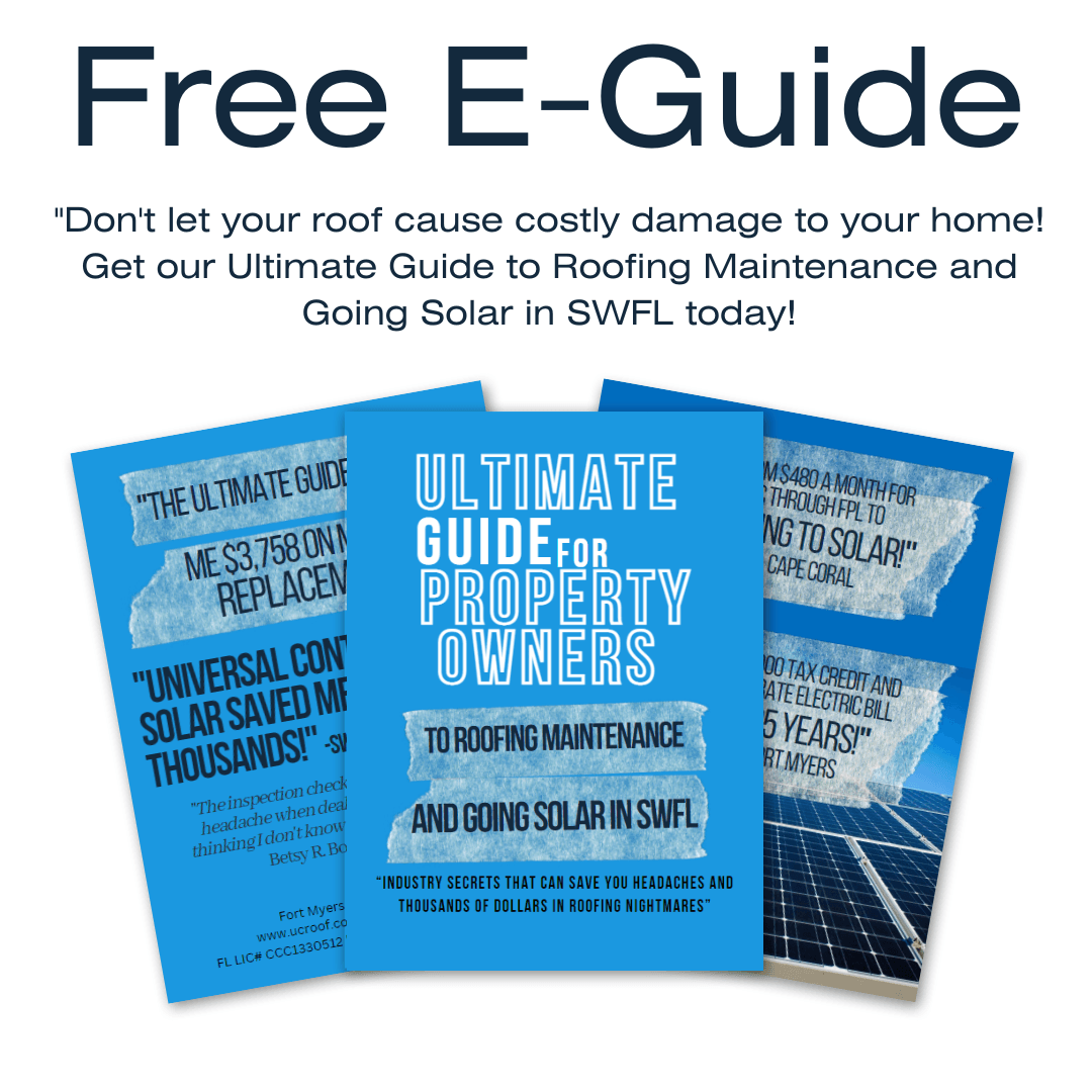 The secret to avoiding costly repairs, truths about going solar and more! Get our free Ultimate Guide to Roofing Maintenance and Going Solar in Southwest Florida now!